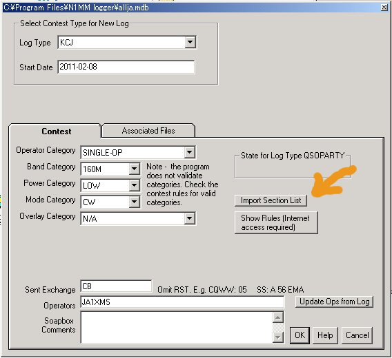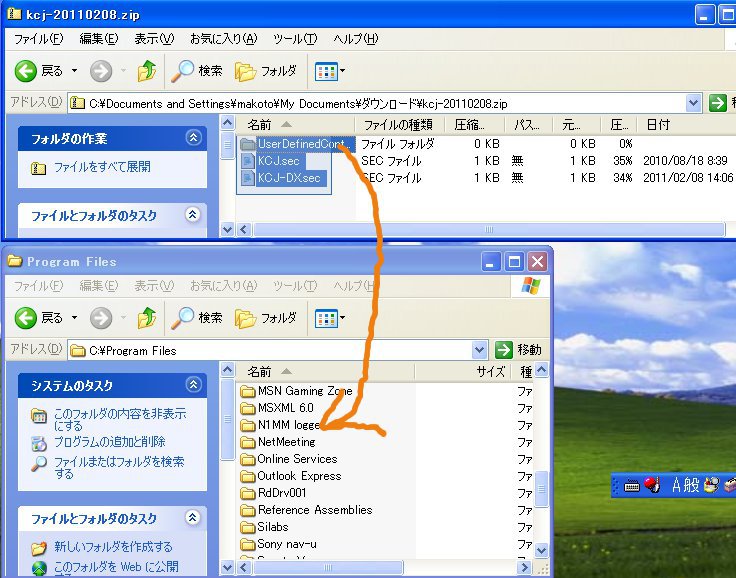 これで 「C: Program File/N1MM Logger/KCJ.sec を読みました」と表示されれば